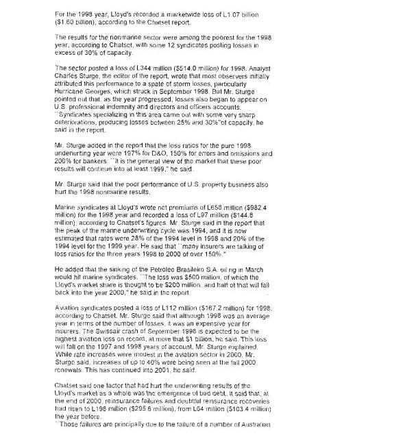 year." "Lloyd's may have to dip into two US. . . funds, worth in total