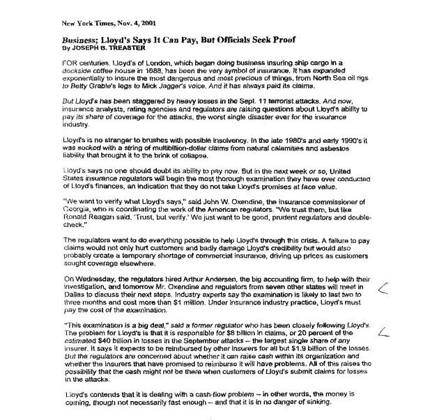 Lloyd's. . . has been slow to confirm how