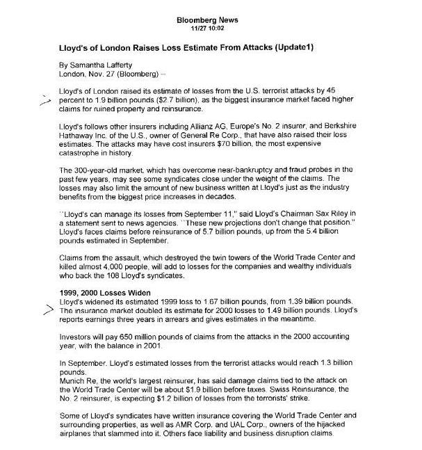 Lloyd's. . . is thought to have estimated